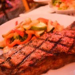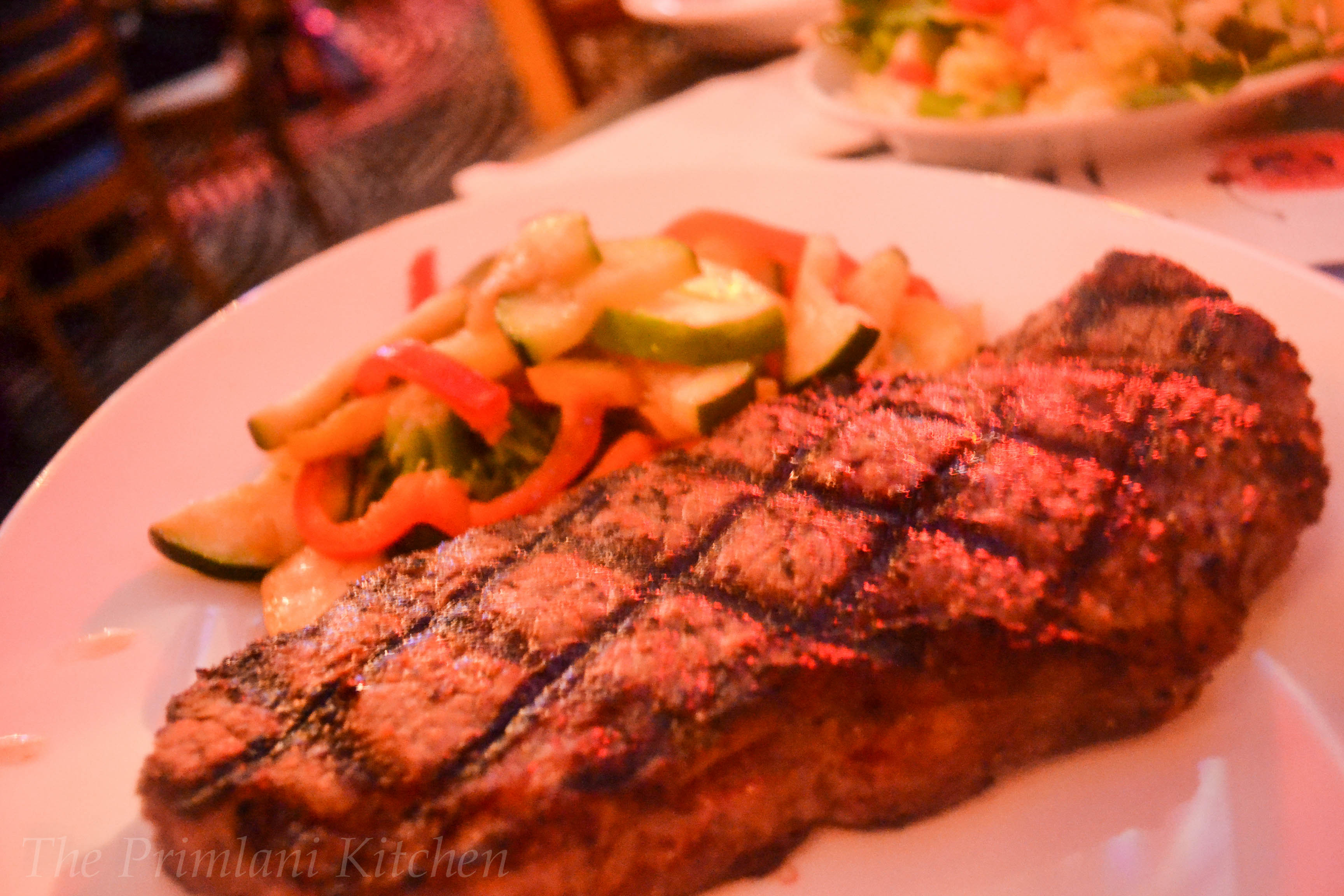 Even though everyone on our table was totally mesmerized with the decor and music; I managed to order food and drinks. Our meal consisted of Zucchini Chips, NY Strip Steak (medium rare), Baby Back Ribs, and Mahi-Mahi. They do have an extensive liquor list with Hollywood themed cocktails, though the menu per se is a glorified version of Applebees/TGIF/Chili’s.