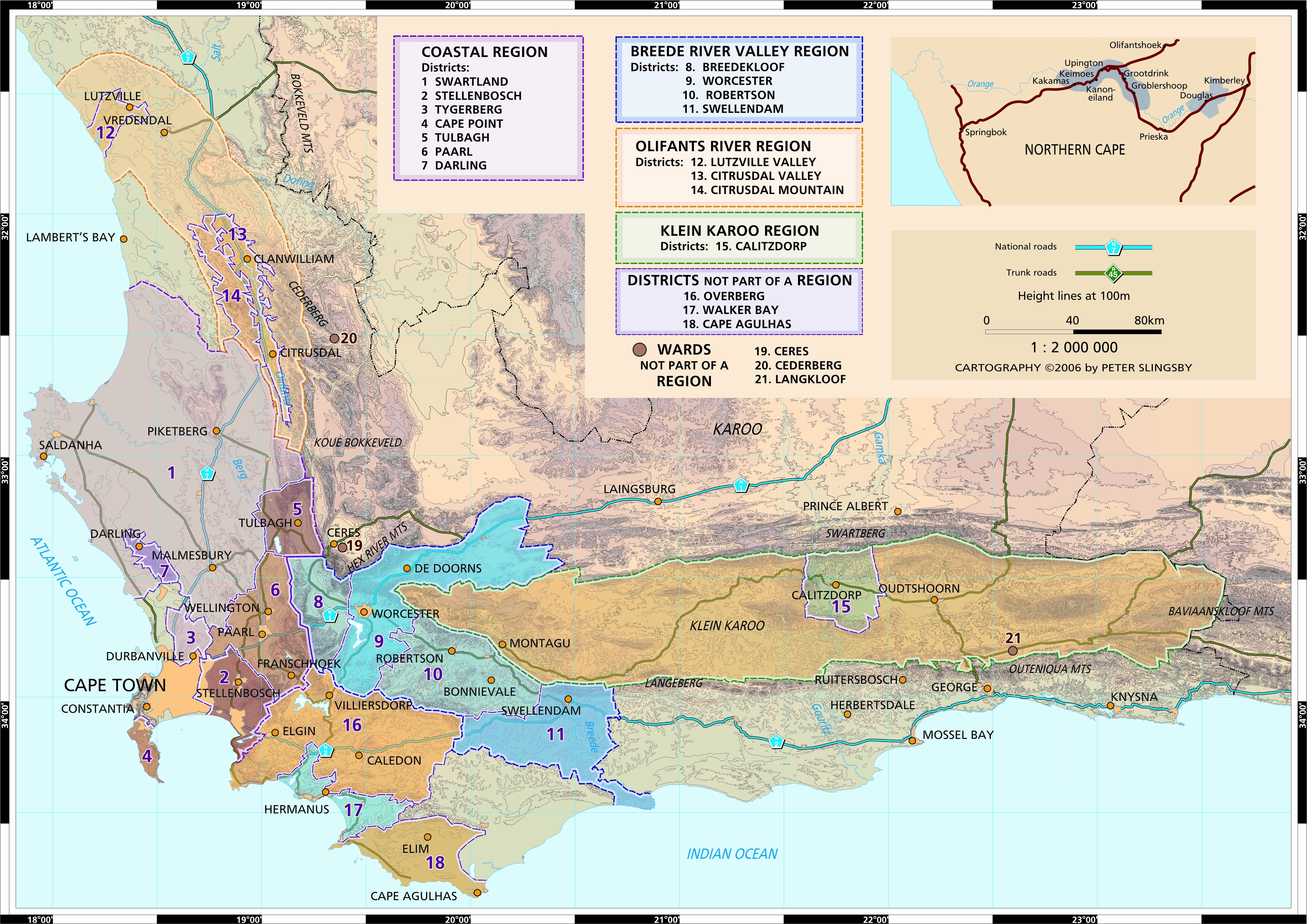 Terroir: Nearly twice as large as the state of Texas, most South African wine production is limited to a small area in the southwest corner of the country – Western Cape, including WO areas and prominent regions: Coastal Region, Cape South Coast, Breede River Valley, Klein Karoo, Olifants River, and Boberg.