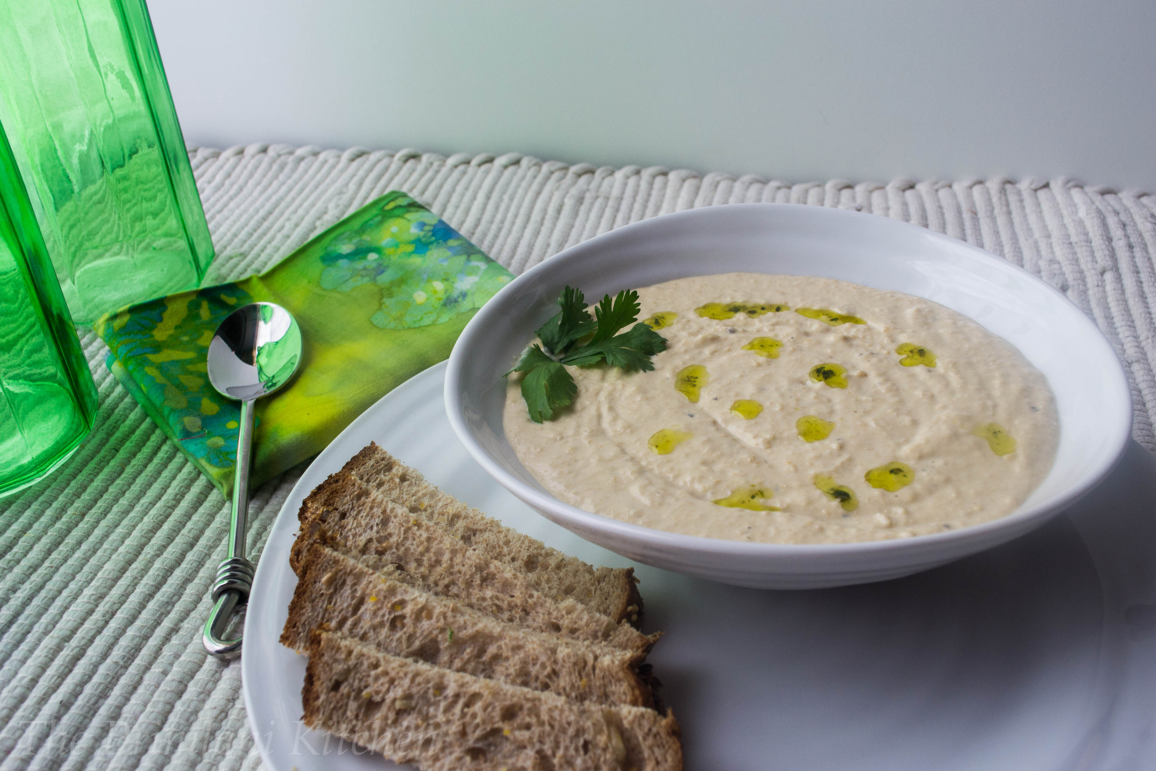 - Purée chick peas, tahini, garlic, water, lemon juice, and salt Puree in a food processor with remaining olive oil till smooth.