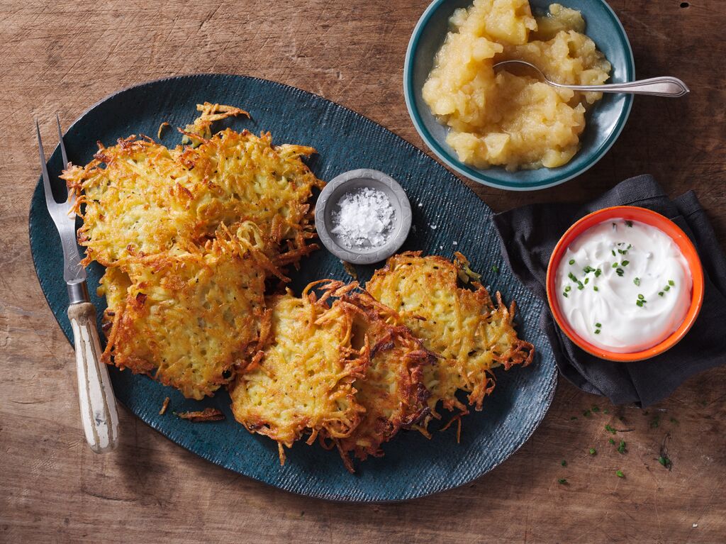 Hannukah Menu: Smoked Seafood Platter to Beef Brisket with Red Wine Sauce, Green Beans Almondine, Latkes Platter to Noodle Kugel & more….