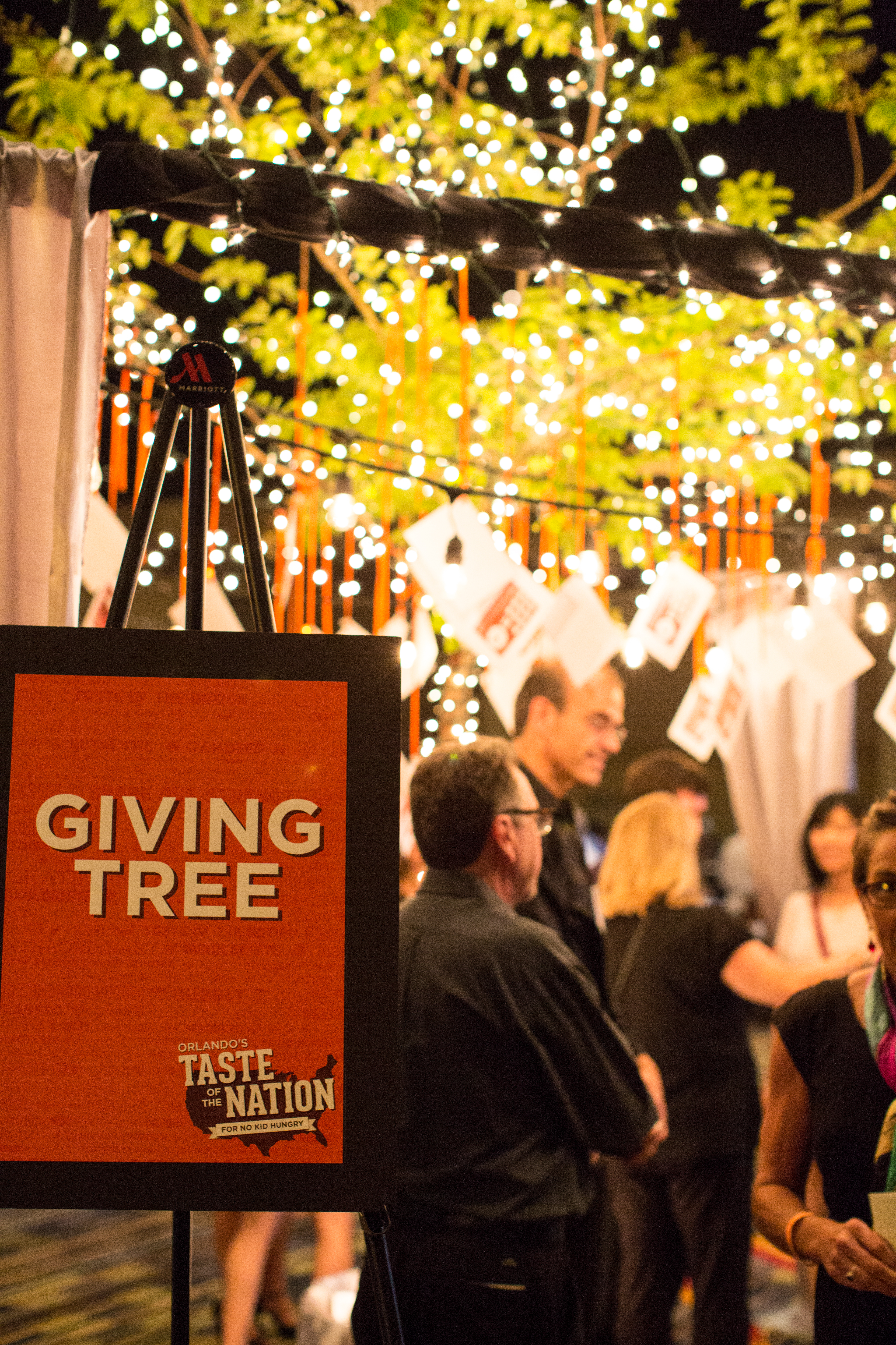 We also recognize the generous support of Orlando World Center Marriott who donated the event space, Progressive Communications who donated printing services, Royal Landscape Nursery who donated the Giving Tree, as well as Eola Wine Company, Hawkers Asian Street Fare, The Ancient Olive and The Spice & Tea Exchange, and World of Beer (Dr. Phillips and Downtown Orlando locations) for their fundraising efforts. Each served up tasty starter events to whet the community’s appetite for Orlando’s Taste of the Nation while raising funds for national beneficiary Share Our Strength and local beneficiaries Coalition for the Homeless of Central Florida and Second Harvest Food Bank of Central Florida.