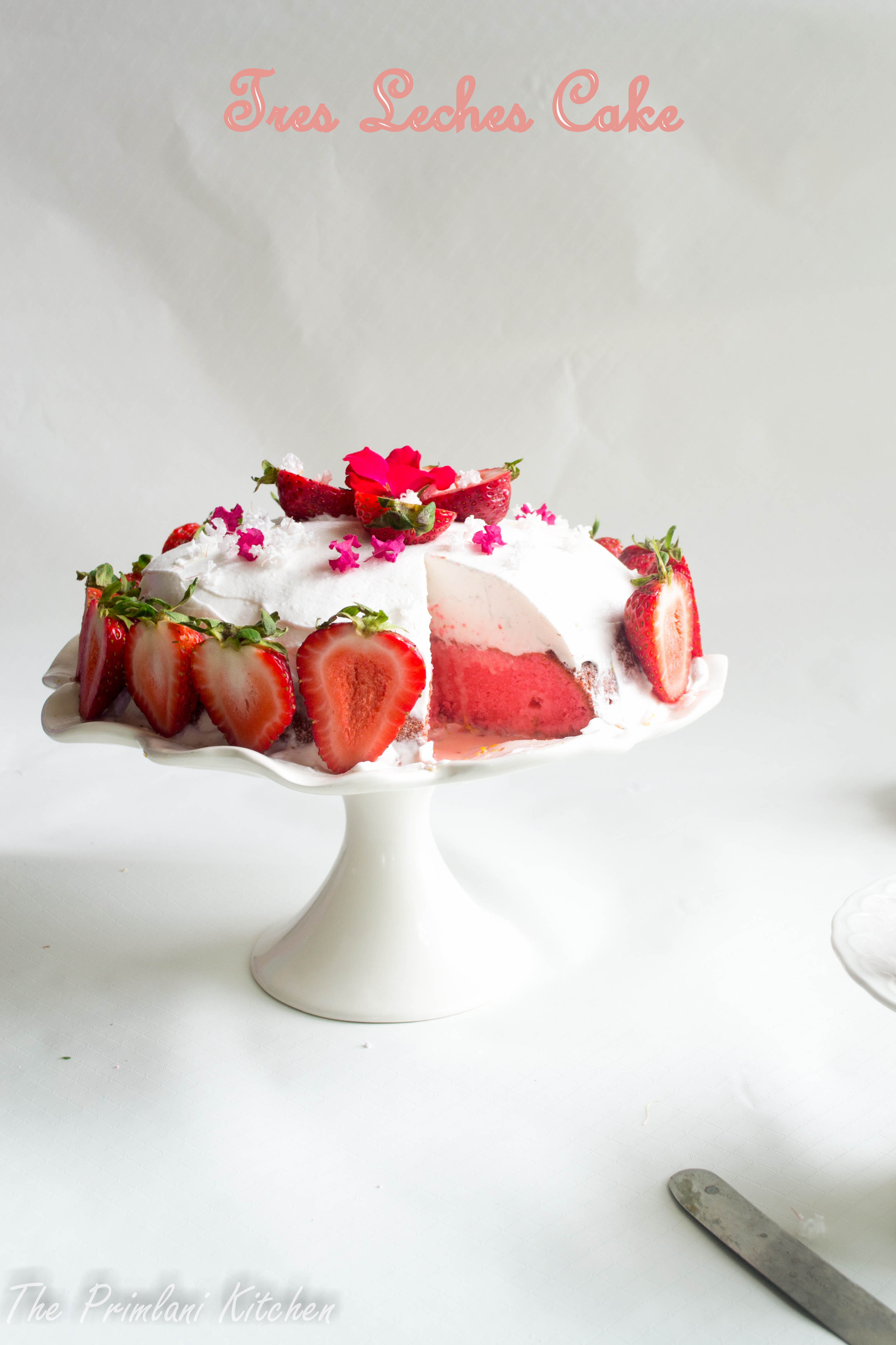 I prefer to serve it with meringue frosting as it’s lighter and healthier than the traditional whipped cream or buttercream frosting. Steeping the three-milk combination with cardamom and rose adds the extra zing to this delightful cake.