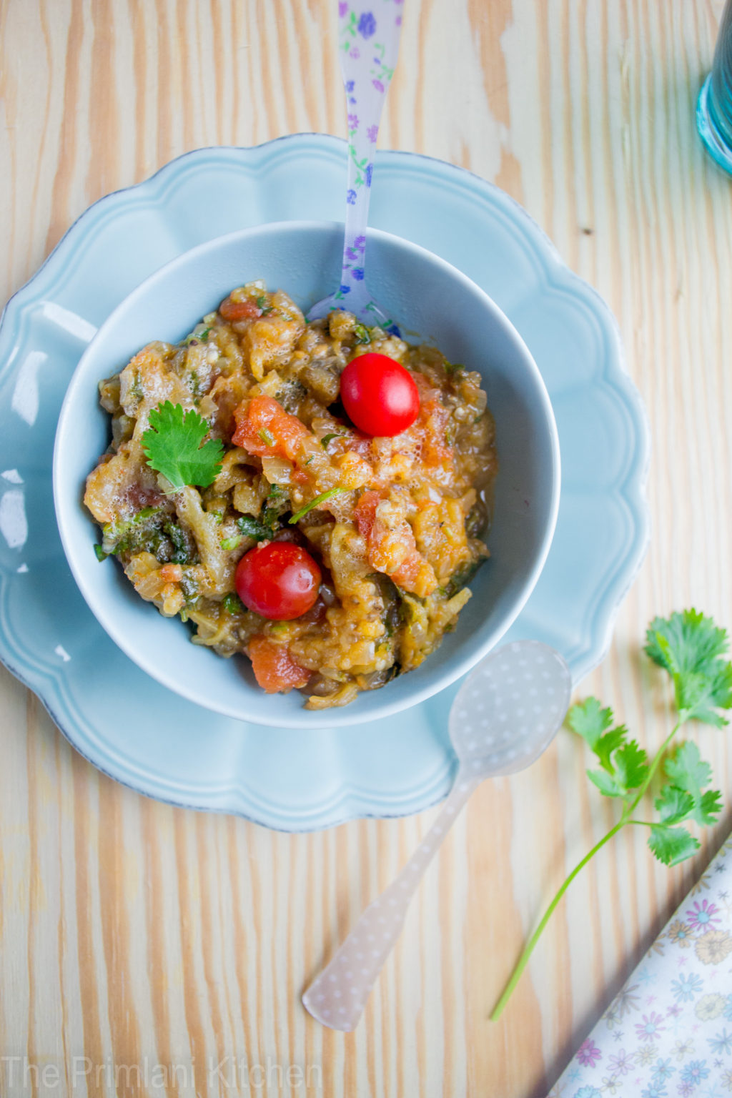 Eggplant is a delicacy in Indian & Italian cooking. Every household has their own version of it. Here is my version of it – spicy and smoky eggplant pâté (bharta). Spoon it over toasted crostini or pita bread, scoop it with some tandoori naan, or simply dig in…Either ways, this simple recipe might become your favorite eggplant ever!!