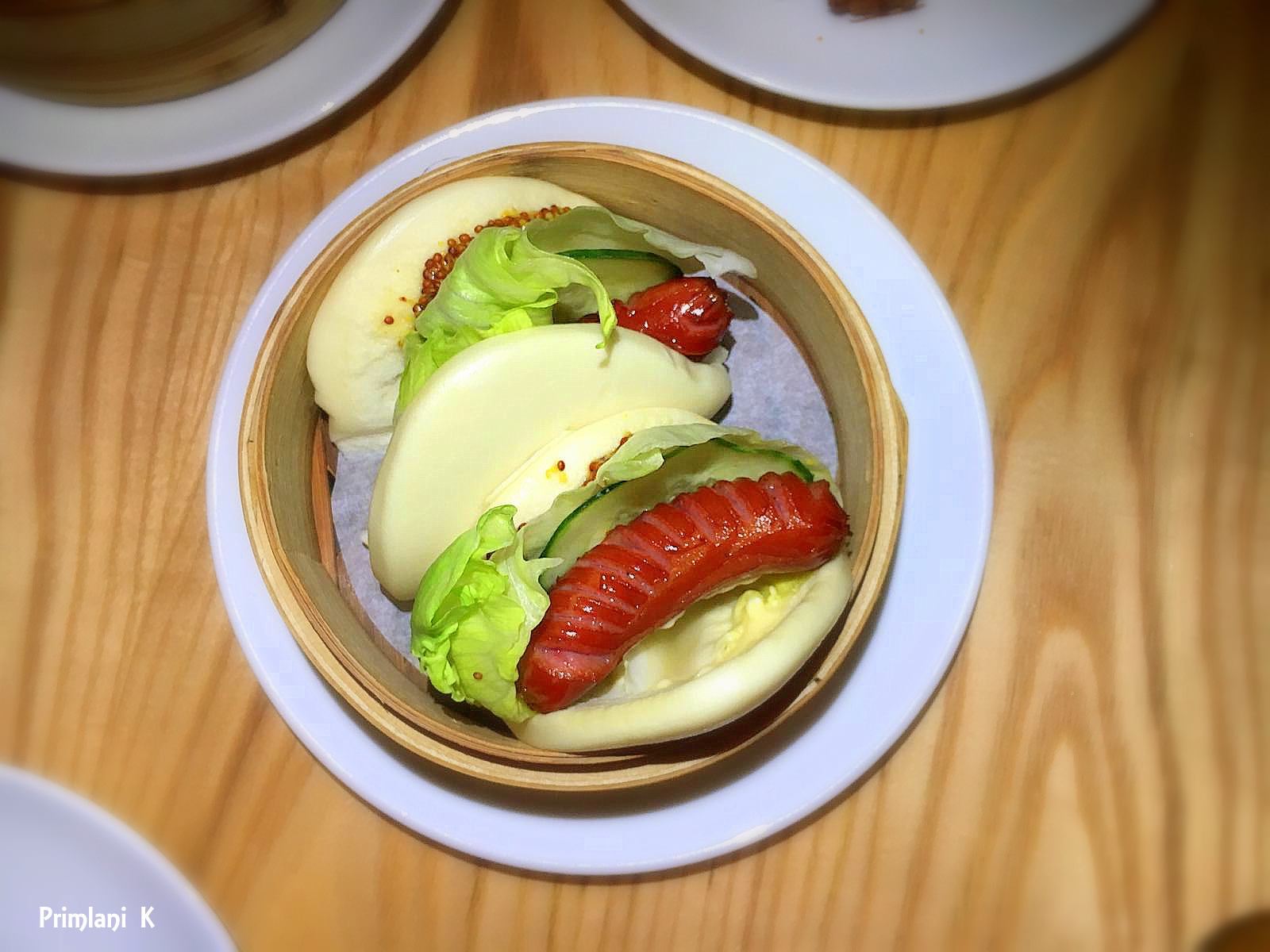 Kurobuta Sausage Bao: Berkshire pork sausage, lettuce, cucumber, whole grain mustard. Executive Chef Yuzi’s personal spin on an American hot dog is served with Pork royalty – Berkshire Pigs. Encased in a pillow of soft baos, it’s the ultimate fusion comfort dish. Baos are also available in teriyaki chicken and kakuni pork flavors.