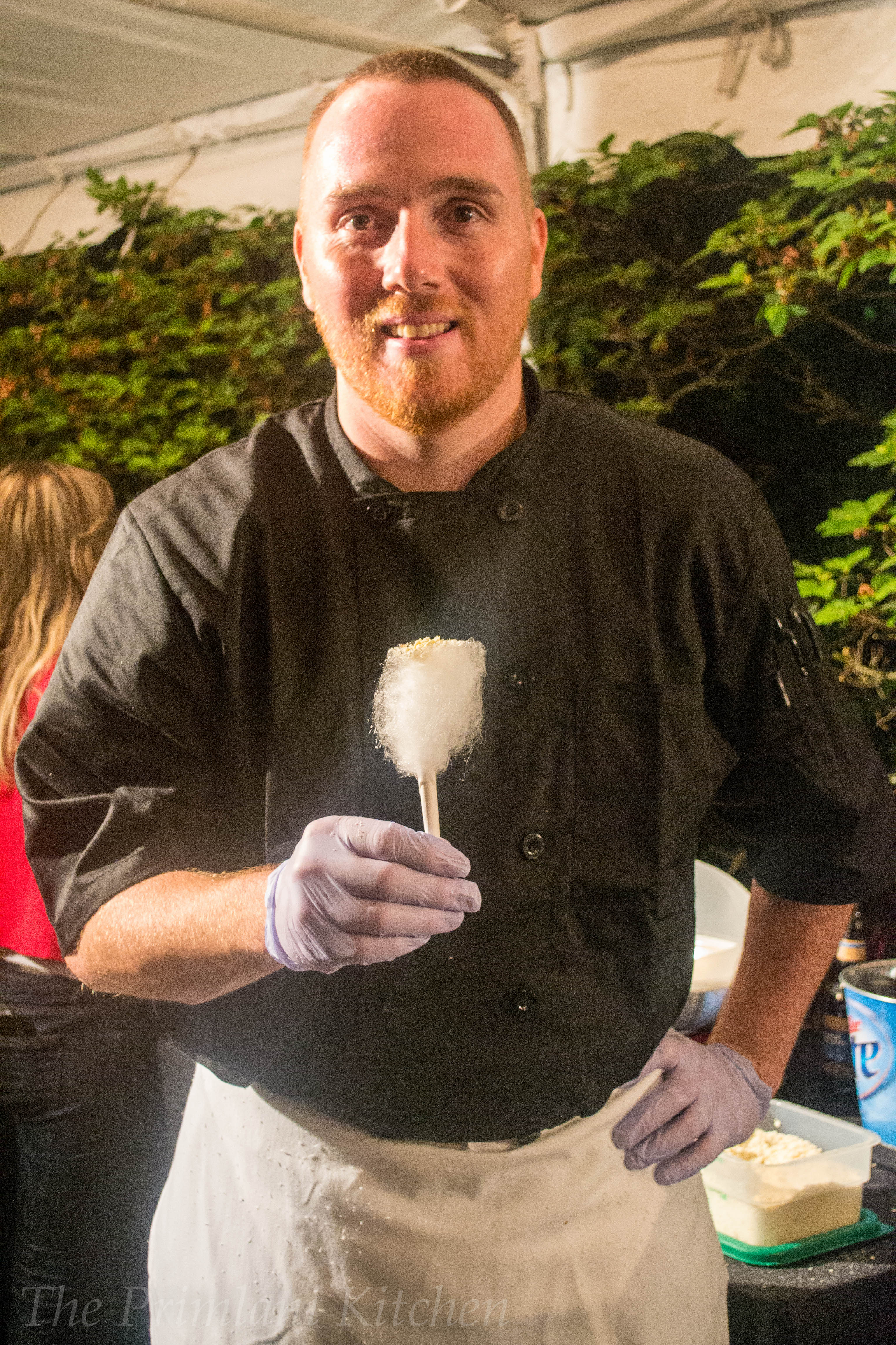 Chef Jason Scofield, White Wolf Cafe: Hot Dogs with Spare Rib Relish and Caramelized Popcorn Dust with Cotton Candy.