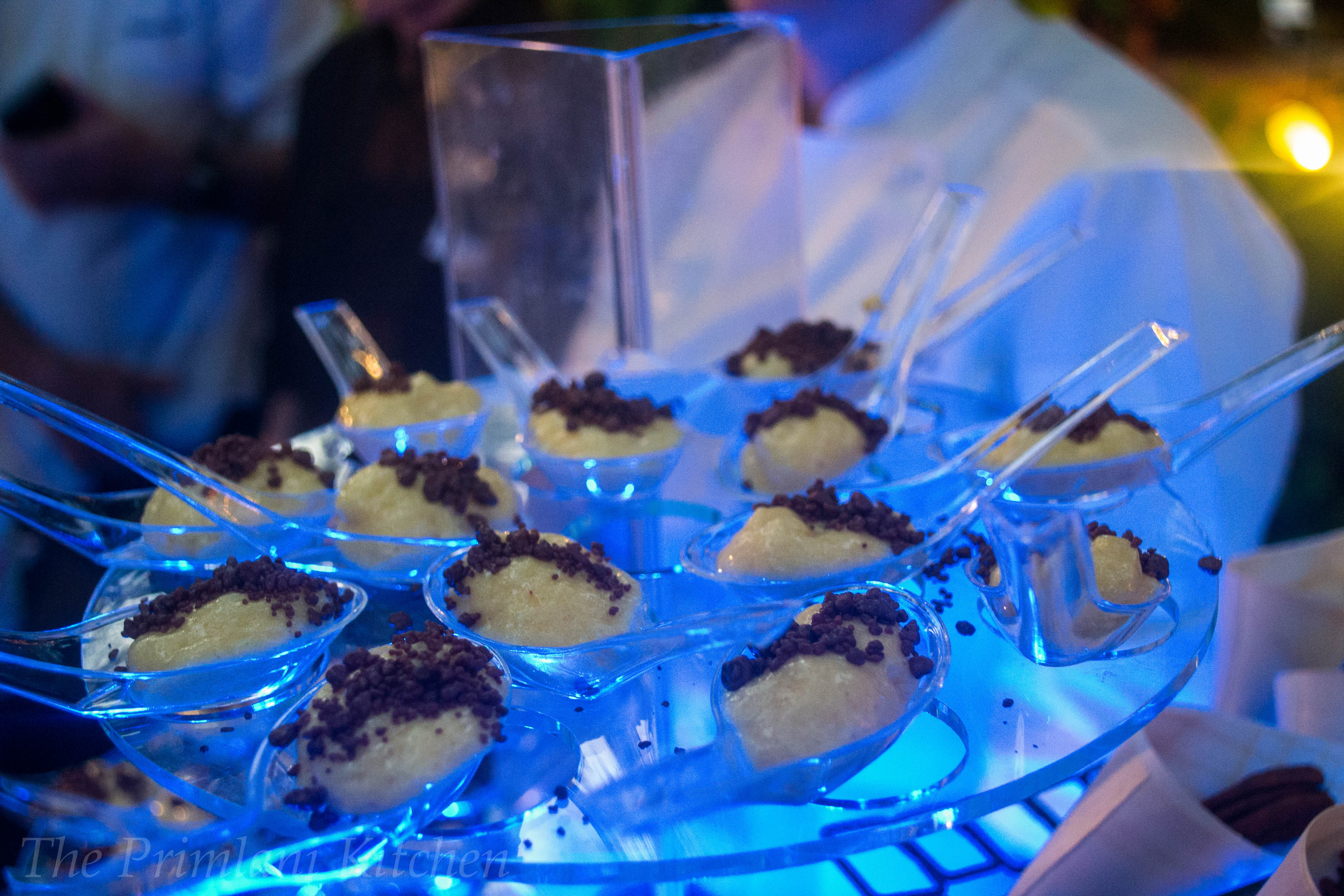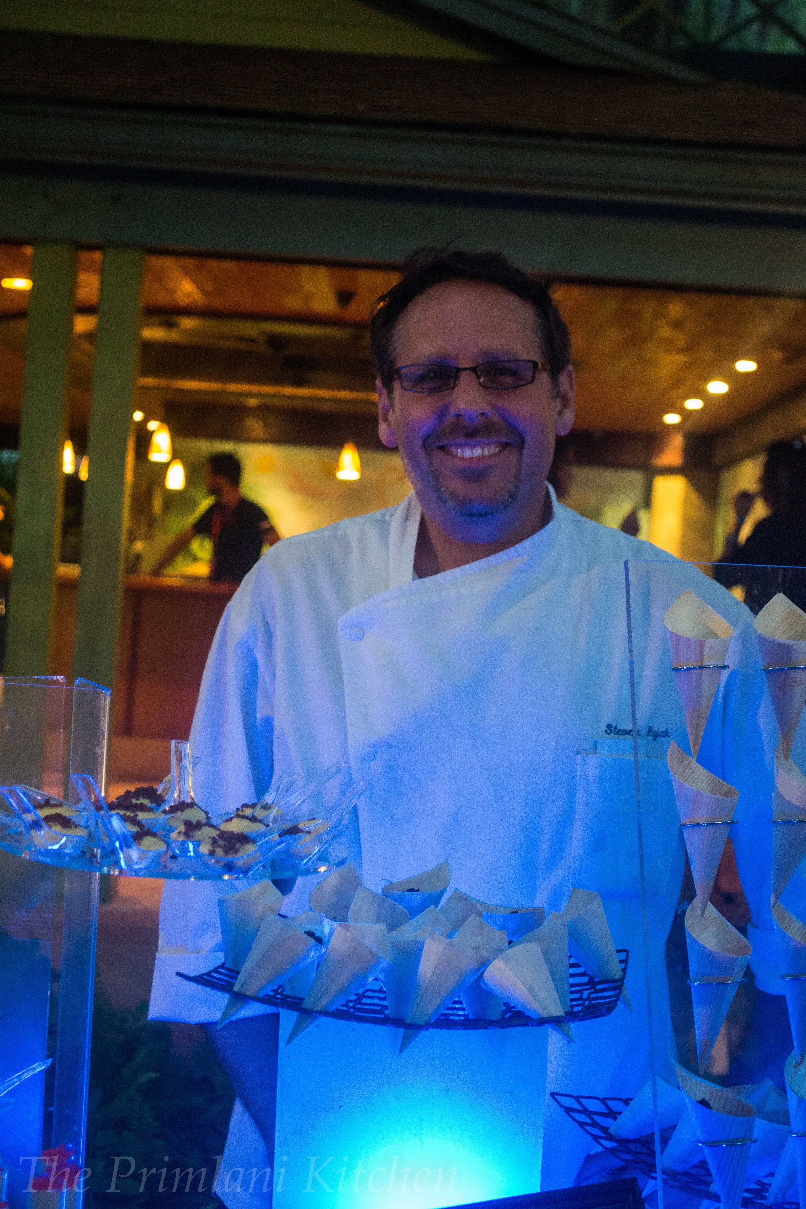 Pastry Chef Steven Rujak, Hyatt Grand Cypress: Mango Cream & Grapefruit Caviar Push-ups, Frozen Whipped Cream Churros, Bouchee of Banana Bread Pudding, Smoking Berries, Spicy Pecans and Passion Fruit Marshmallows.