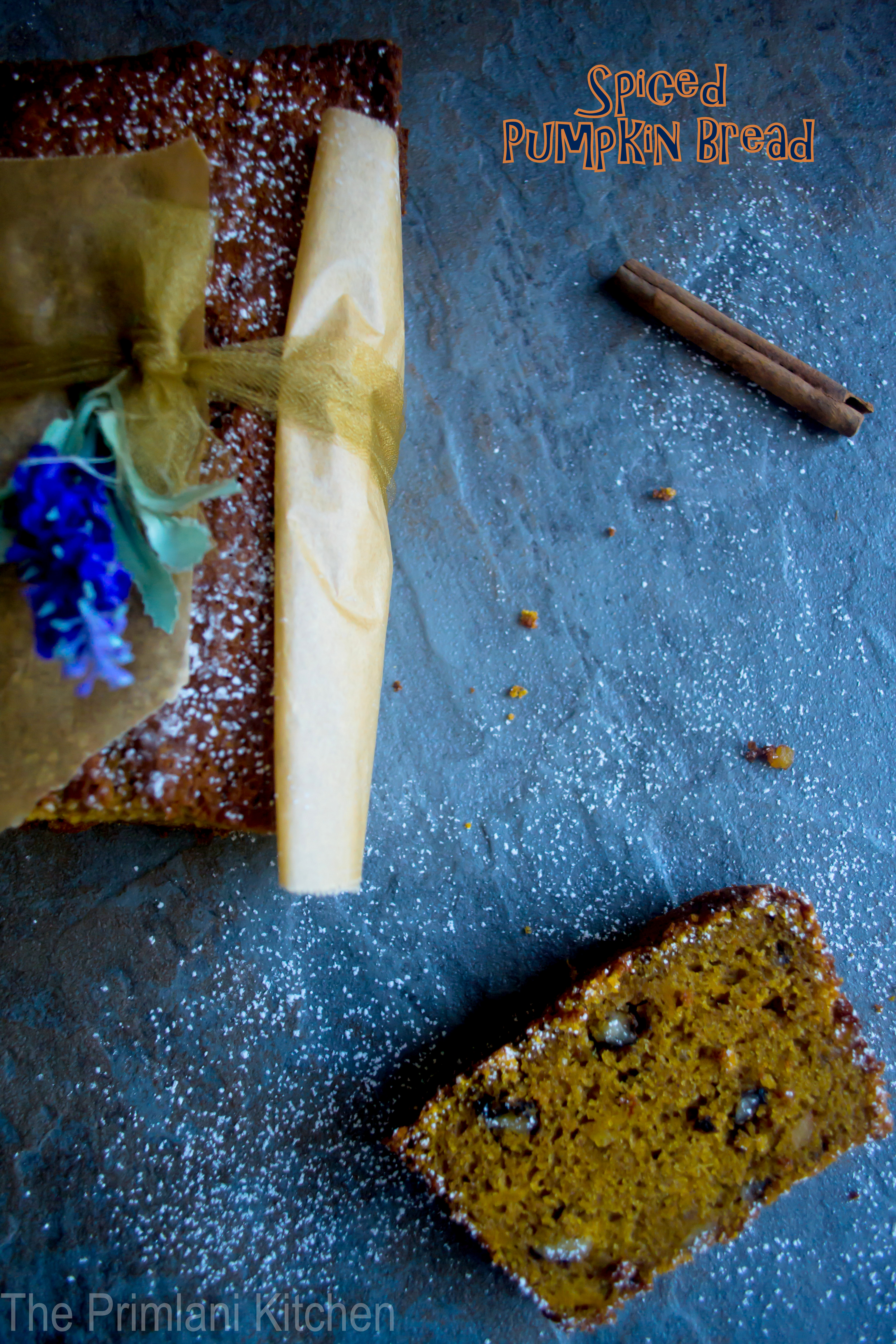 With pumpkin season in full season, swap out your standard banana bread for this moist spiced pumpkin bread. It has all the flavors of fall and some more. It is the perfect cure for a chilly winter morning.