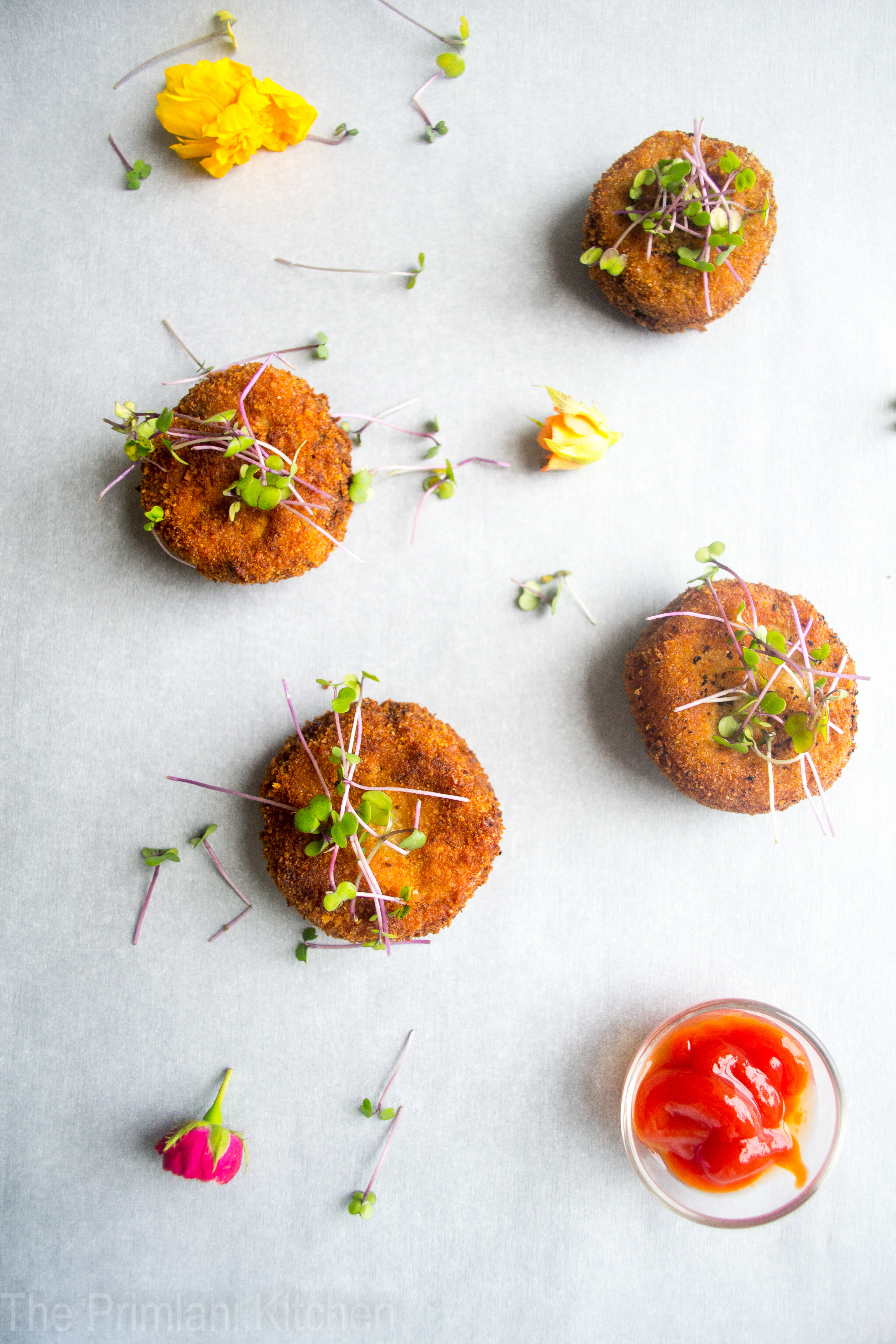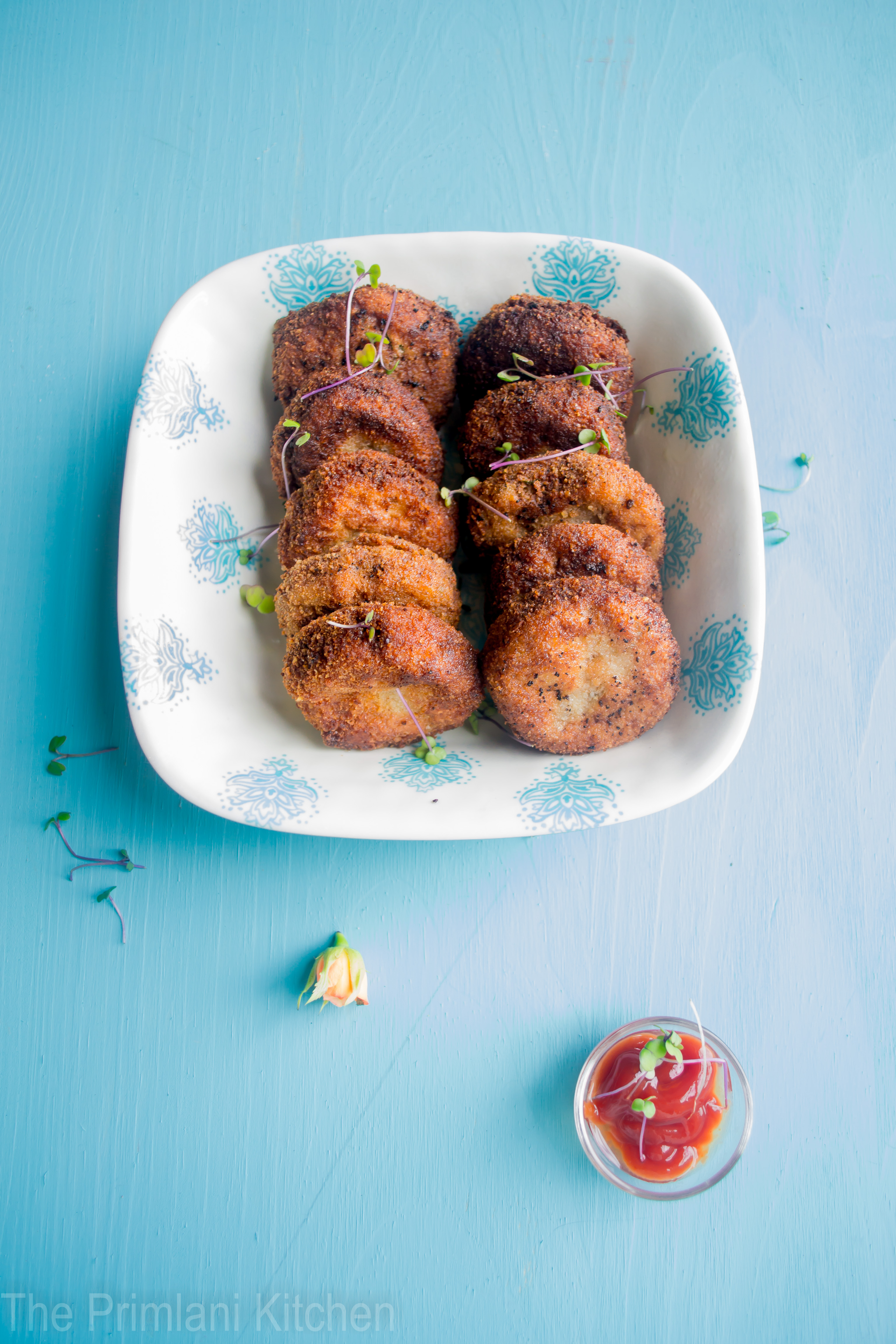 - To assemble, add green chilis, onions, and coriander leaves to mixture and form small golf ball sized patties.