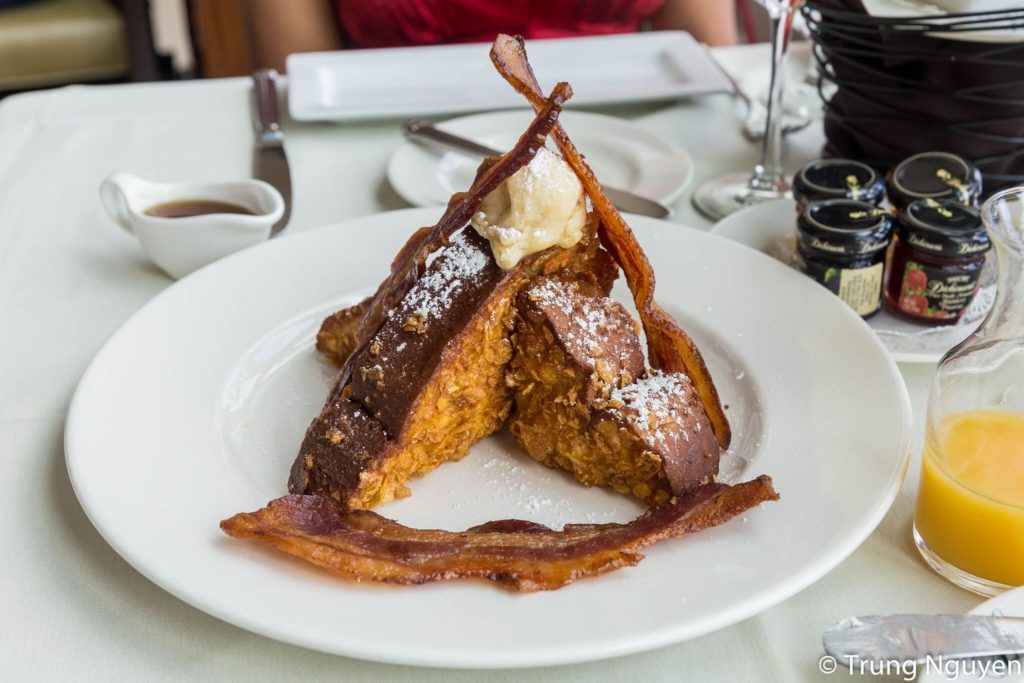 The perennial question people ask us – What’s your favorite meal of the week? Unequivocally for us it is Brunch. There is nothing better than a boozy brunch to melt away your weekend woes. It’s like a mini-getaway, to nourish your soul and body, with bubbles and butter. South Carolina’s hottest family steakhouse Halls Chophouse Lavender scented Brioche French Toast will permanently alter your perception of french toasts. A sublime interpretation, supple softness of the brioche, contrasted with the crunchiness of cornflakes, adorned with espresso mascarpone cheese and applewood smoked bacon, aka our new favorite.