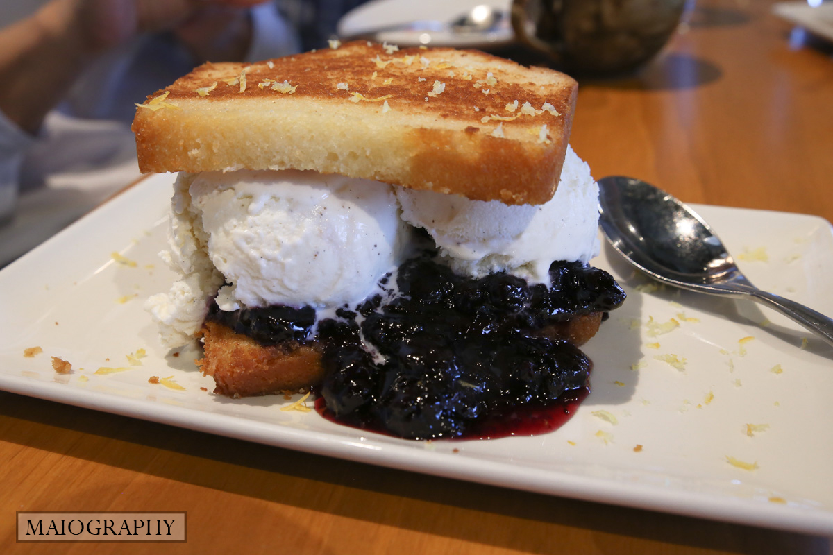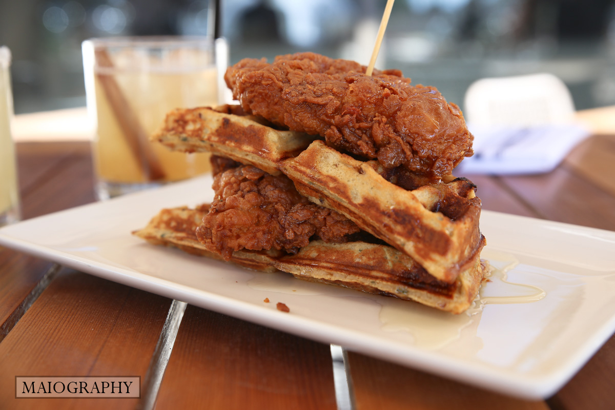 Chicken & Waffles – White Wisconsin Cheddar & Bacon dust waffle, agave syrup. Southern soulful original gets a make over with super crunchy cheddar exterior, moist meat, smoky bacon, and smooth agave syrup. I highly recommend ordering your own, somethings in life are simply not meant to be shared.